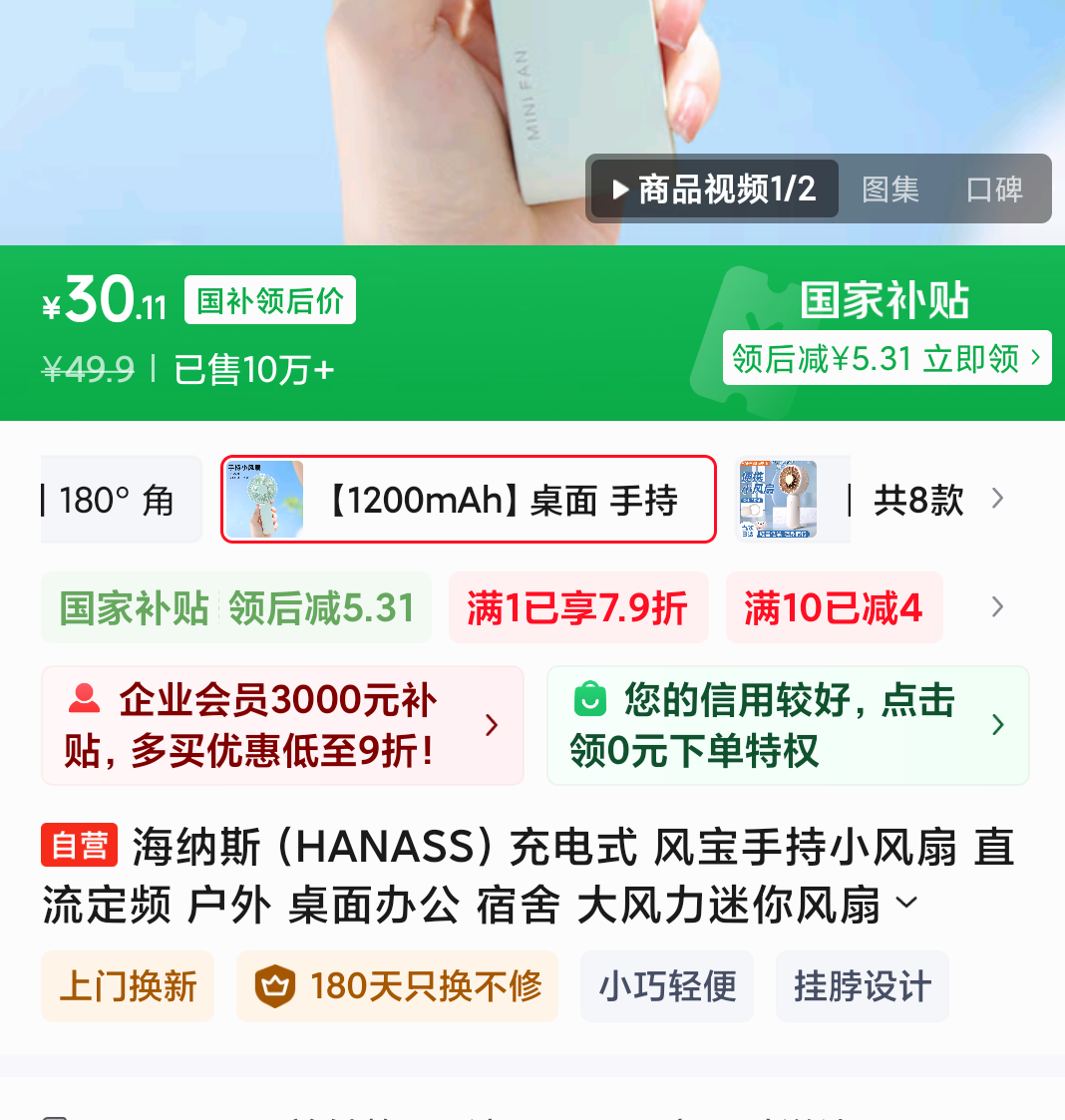 Plus会员、再降价、限地区:海纳斯 充电式直流定频 小风扇 WT-F58 30.11元