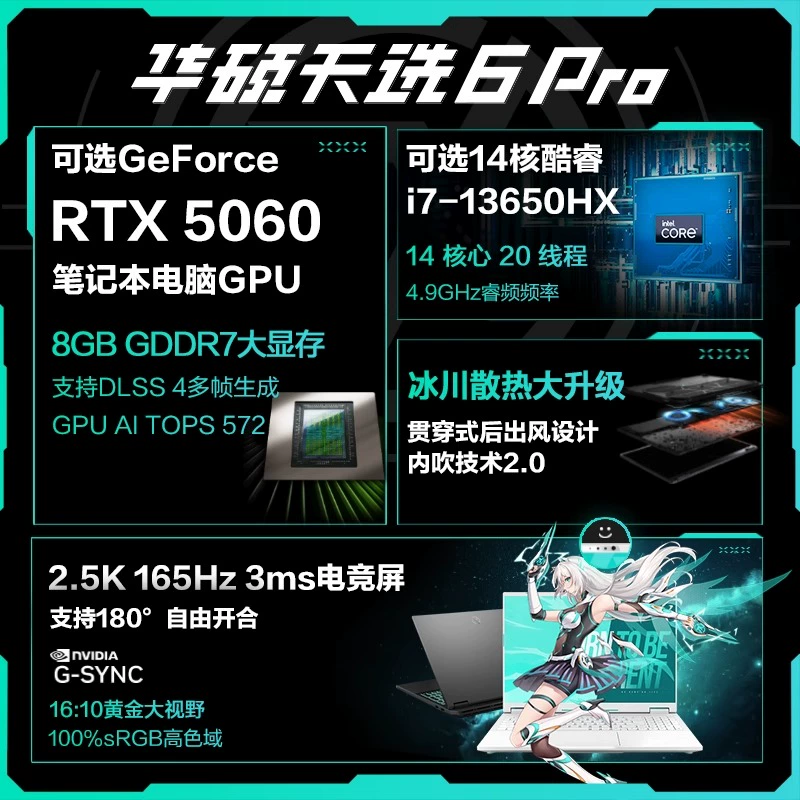 华硕 ASUS 天选6Pro 十三代酷睿版 16英寸 游戏本 6599.2元