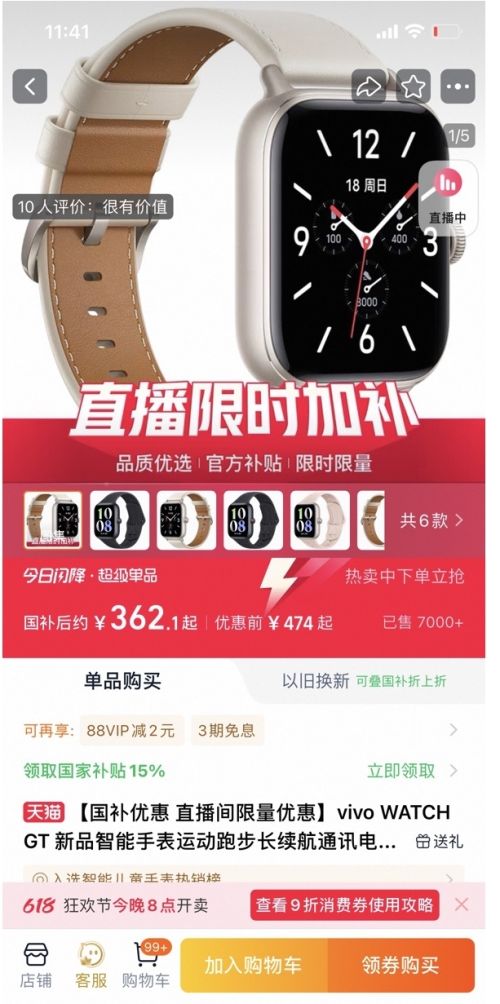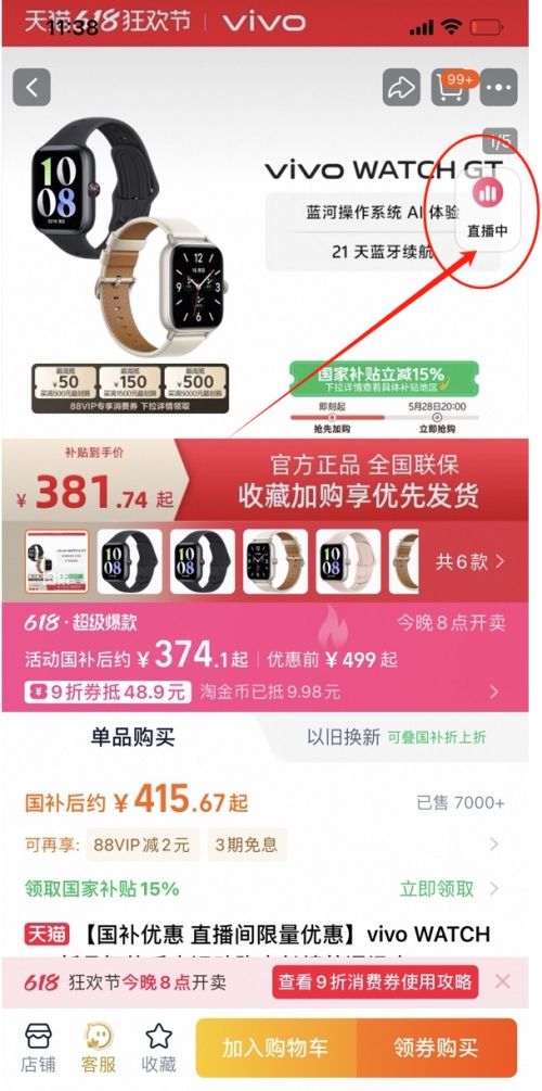 vivo WATCH GT 新品智能手表 软胶 蓝牙版 362.1元包邮