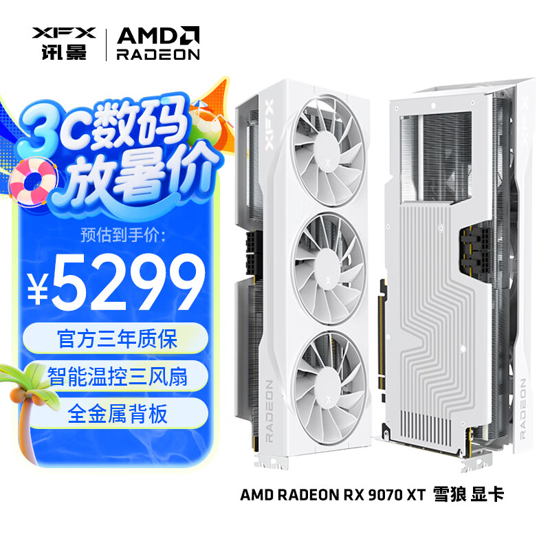 讯景 RADEON RX 9070 XT 雪狼 显卡 16GB 5272.51元